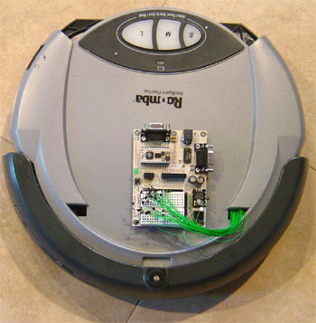 Hacked Roomba using a Parallax Javelin Stamp to replace the microcontroller. | |